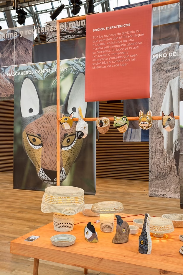 Diseño: Comunidad de Pilagá  + Nacho Fabio + Rosaura Flynn.  Realizados en fibras de carandillo de la comunidad Pilagá con artefactos de iluminación LED.